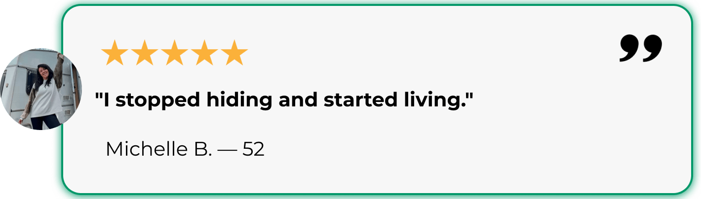 By week 4–8: You'll recognize yourself again—sustained energy, mental clarity, comfortable in your body.